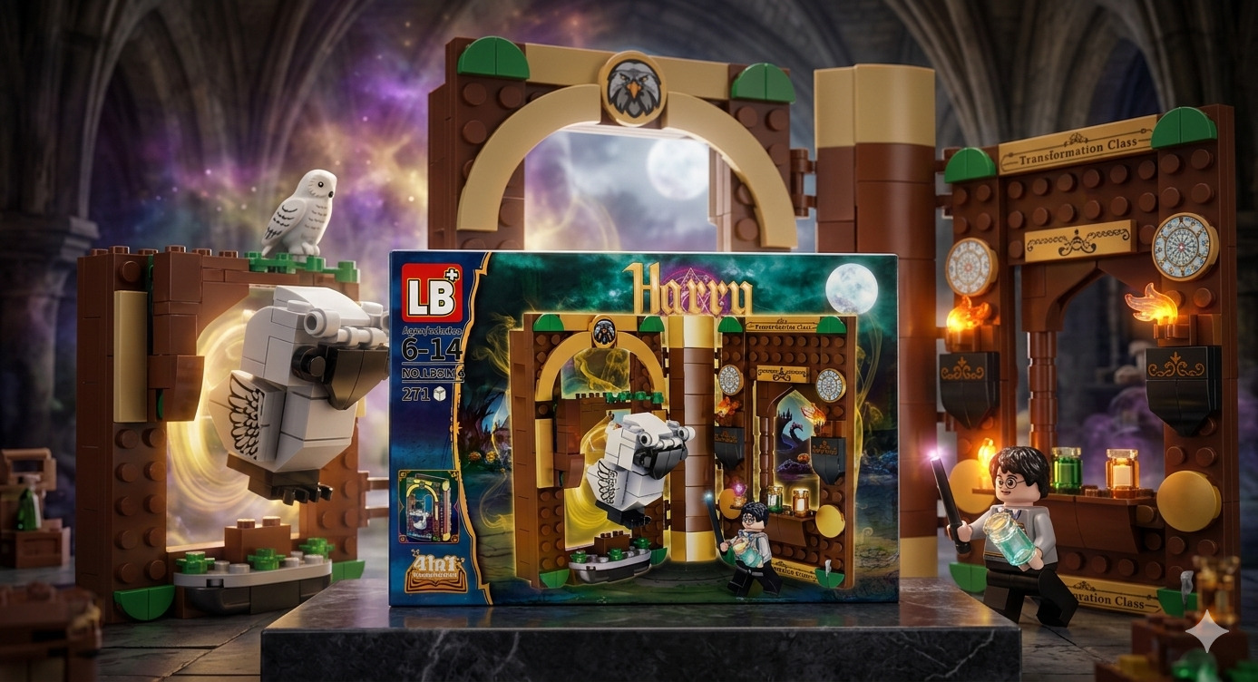 إنها تجربة بناء (Building Blocks) مذهلة ومختلفة، لأن المجسم بيتبني على شكل “كتاب سحري” مقفول. وبمجرد ما الطفل يفتحه، بيتحول الكتاب لغرفة “حصة التحول” (Transformation Class) بكل تفاصيلها السحرية، زي السبورة، الشموع، والمقاعد، وده بيخليها لعبة وديكور شيك جداً في نفس الوقت 🔄🧱
