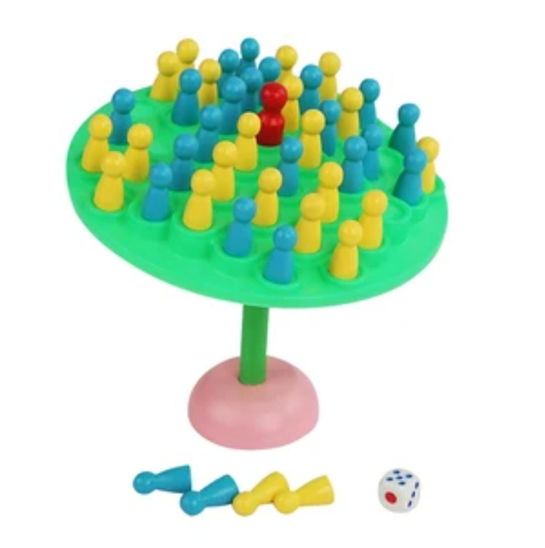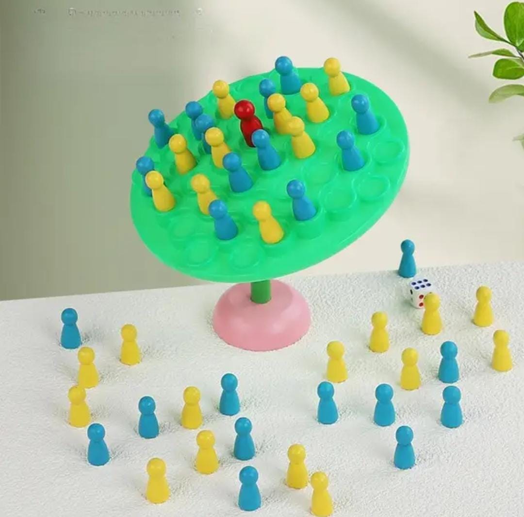 – اللعبة عبارة عن شجرة خشبية وأشكال صغيرة على شكل رجال ملونين.